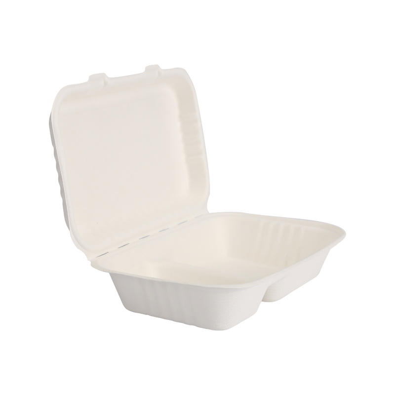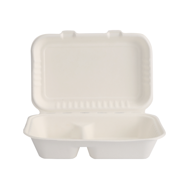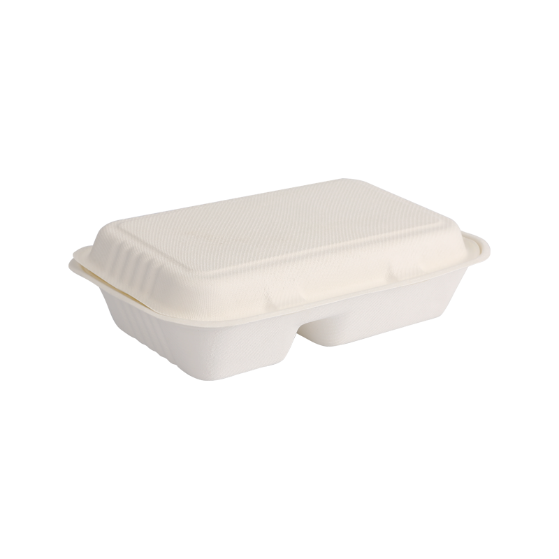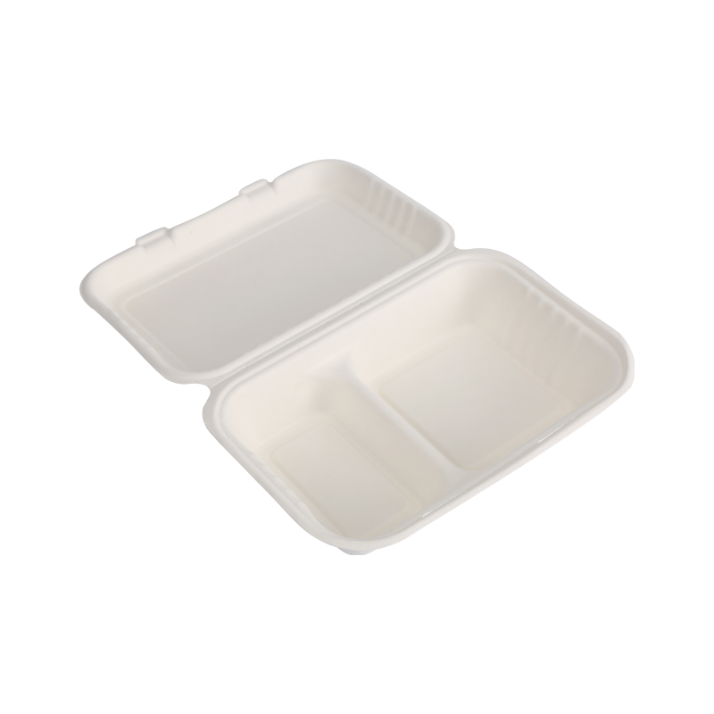 首頁 / 產品 / 甘蔗渣食品容器 / 經濟實惠兩格 34 盎司翻蓋